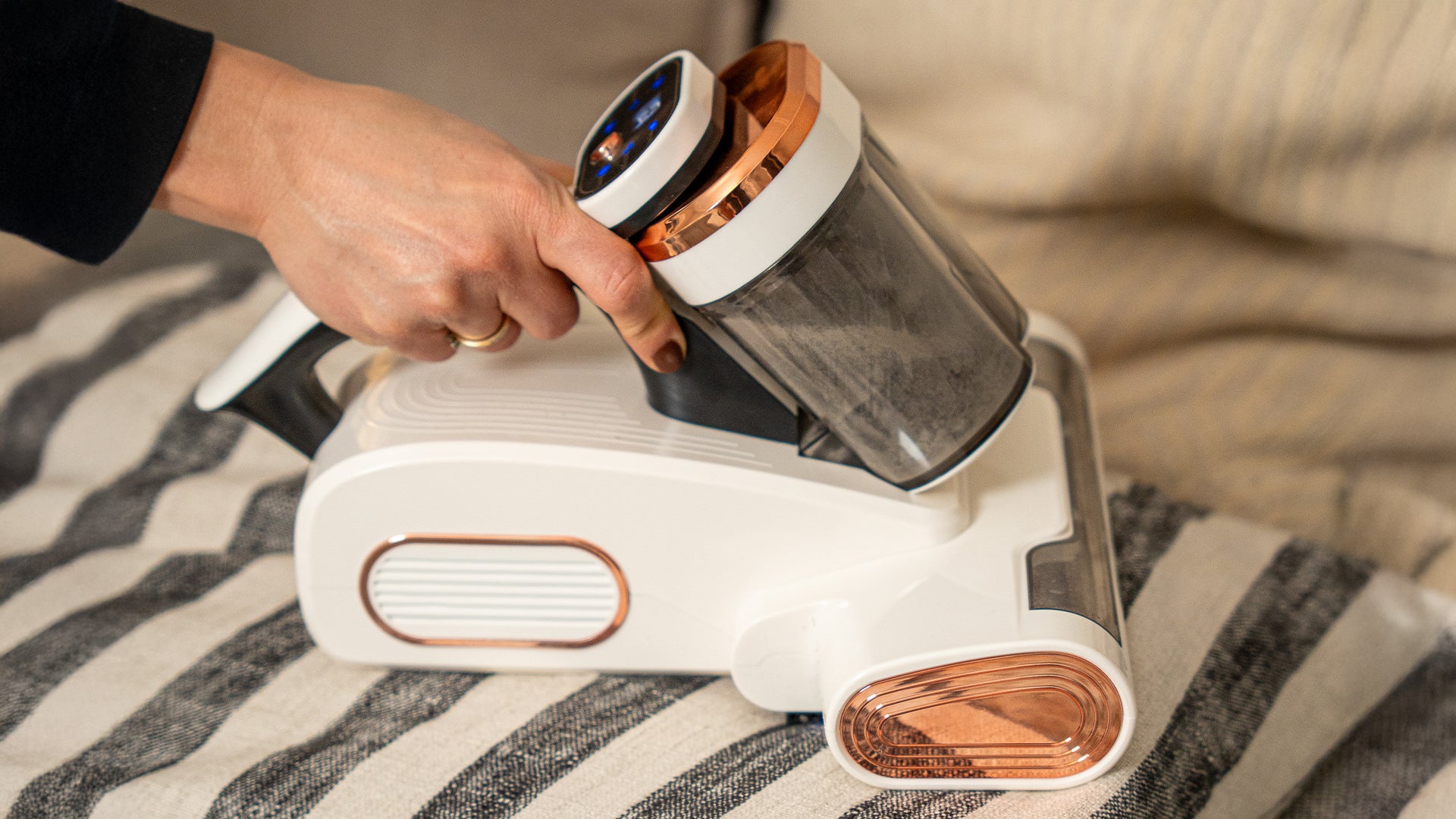 Støvbeholderen kan nemt tømmes ved at trykke på udløserknappen, fjerne beholderen fra hovedenheden, og tømme indholdet direkte i skraldespanden. Vi anbefaler at tømme beholderen efter hver brug for optimal ydeevne.